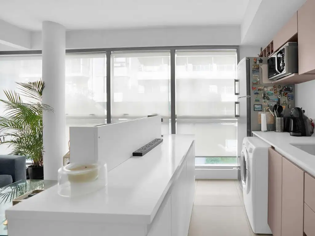 Cocina integrada a un amplio living comedor, con salida a un balcón corrido con vista abierta a la piscina.