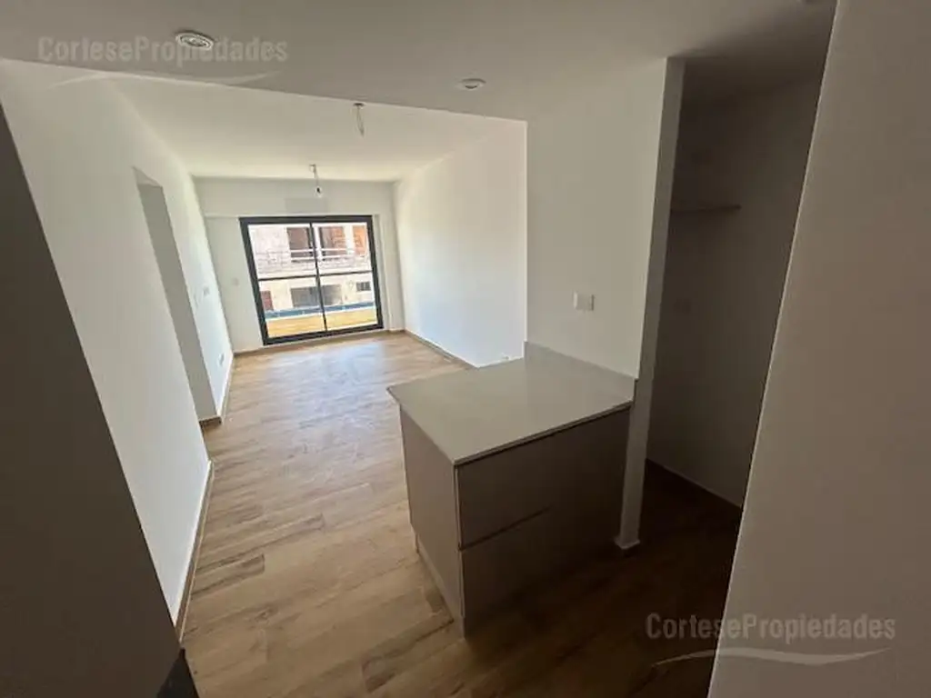 A estrenar, 2 ambientes, 4to piso, al frente con salida al balcón, con cocina completa abierta al living comedor, aberturas de aluminio, mobiliario de cocina completo, placares con interiores terminados. Cocina y Baños de primera marca. Dormitorio con excelente placard, al frente, muy luminoso. Baño completo con receptáculo de ducha.