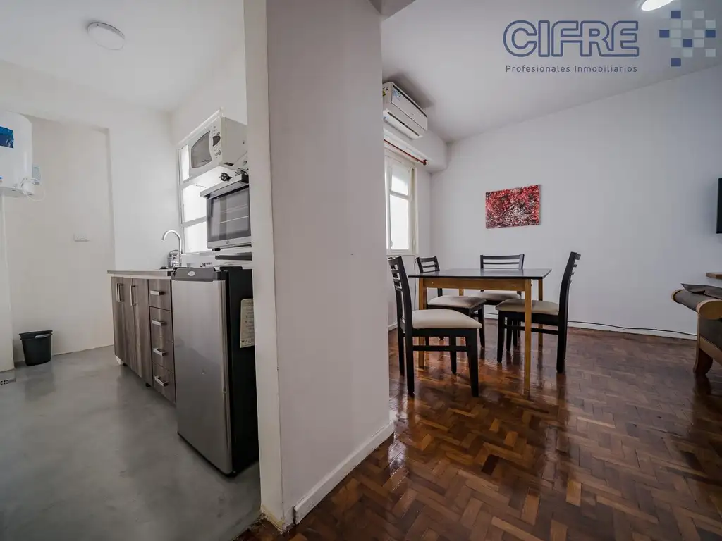 La unidad es un dos ambientes completamente reciclado a nuevo, no solo en lo estético sino también en lo estructural: se renovaron desagues, cañerías e instalación eléctrica, garantizando confort y seguridad.