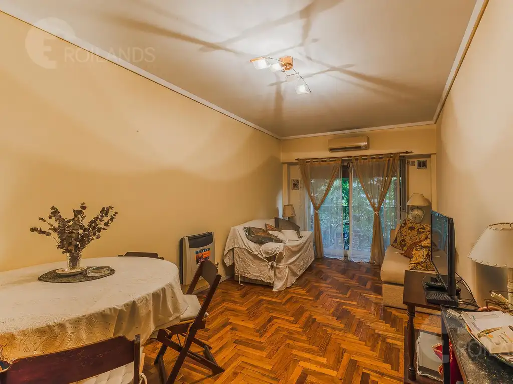 Al ingresar a la propiedad nos recibe un living-comedor amplio, con pisos de parquet en muy buen estado y salida a balcón al frente, con agradable vista arbolada que aporta luz y privacidad.