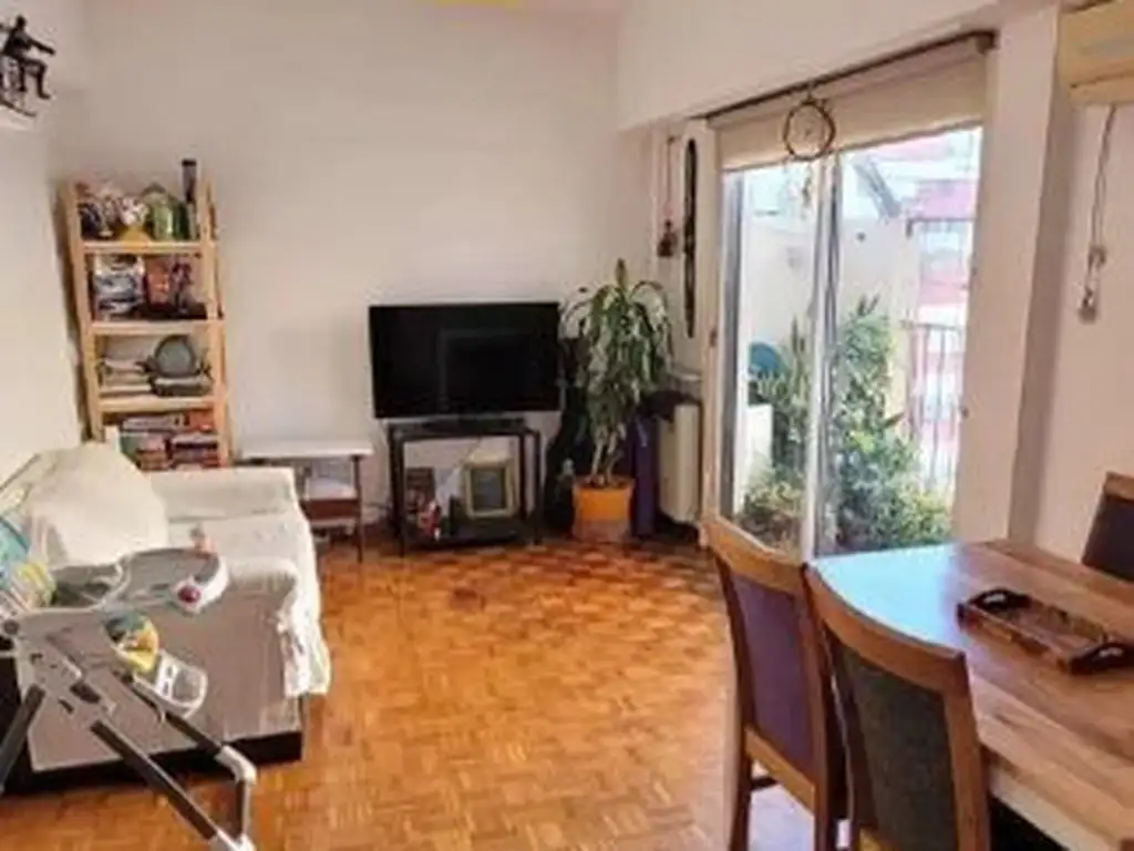 Apto crédito. Departamento de 3 ambientes, al contrafrente. 8º piso. Superficie total de 58m2, cubierta de 56m2 y descubierta de 2m2. Dos dormitorios, un baño completo. Living-comedor, cocina. Balcón. Lavadero. Muy buen estado, muy luminoso. Pisos de parquet.