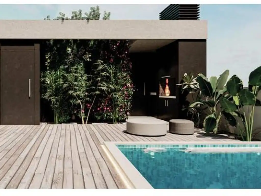 Las zonas húmedas y balcones contarán con porcelanato Vite Calacata mate 60x60 o similar. La piscina tendrá interior revestido en venecitas o similar.