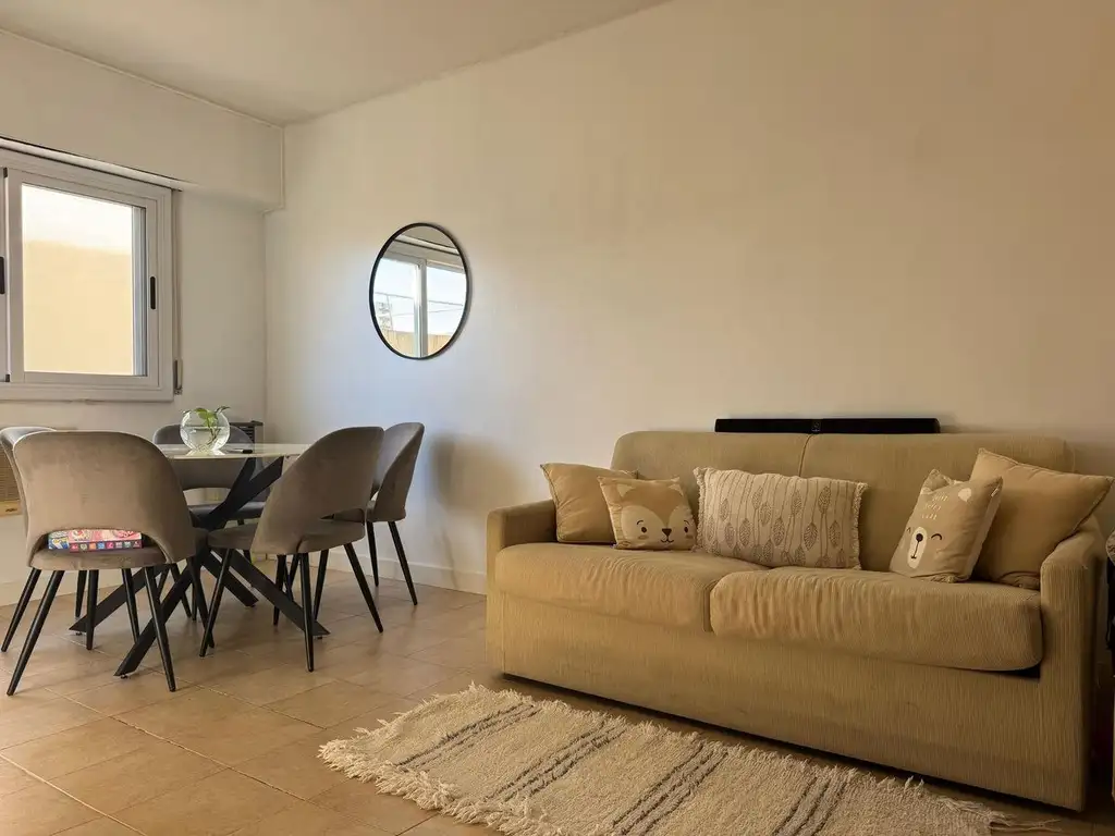 Cómodo living-comedor con ventana al lateral del edificio.