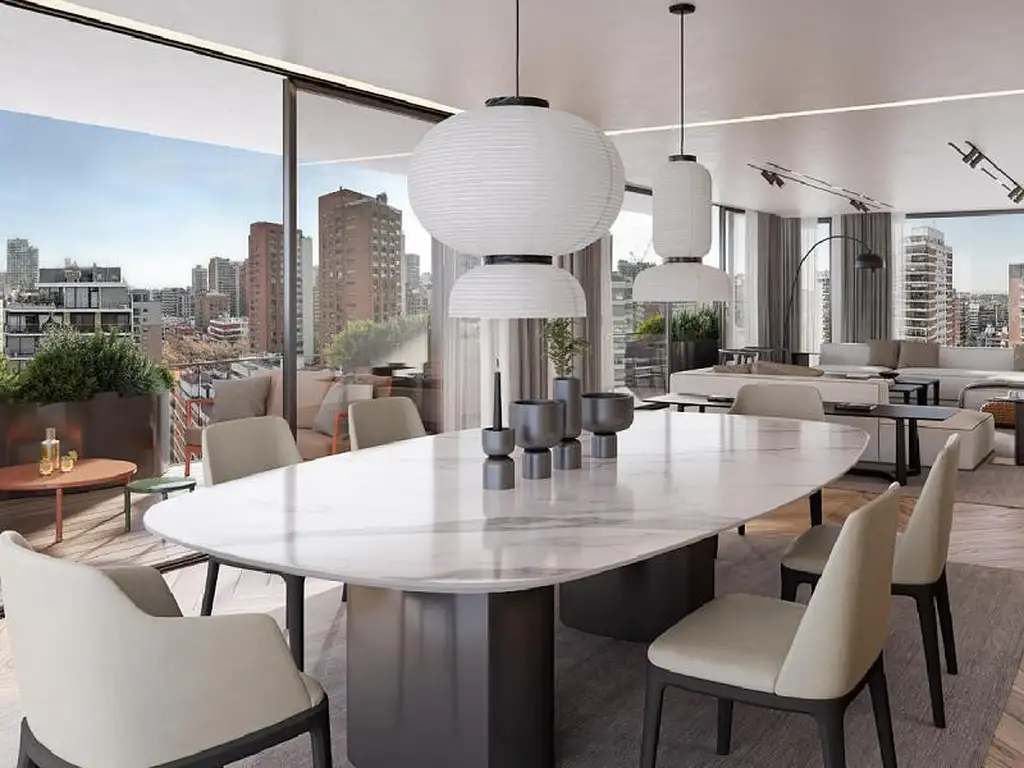 Imponente piso de 4 dormitorios en suite, incluyendo una exclusiva master suite con doble vestidor. Acceso por palier privado con doble ascensor y doble circulación que garantiza privacidad y funcionalidad. Cocina de generosas dimensiones con isla central, ideal para quienes disfrutan de diseño y practicidad. Toilette de recepción, lavadero independiente y dependencia de servicio. Entrada de servicio por ascensor secundario. Gran balcón aterrazado que aporta luz y espacio al entorno cotidiano. Entrega 10/2028