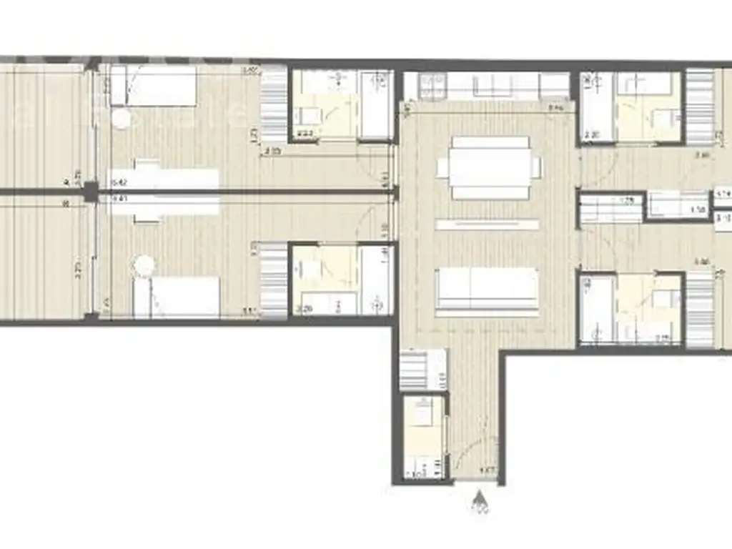 4 Dormitorios en suite con espacio para escritorio, 2 de ellos con salida a Patio privado al contrafrente y 2 al frente con salida al balcón.
