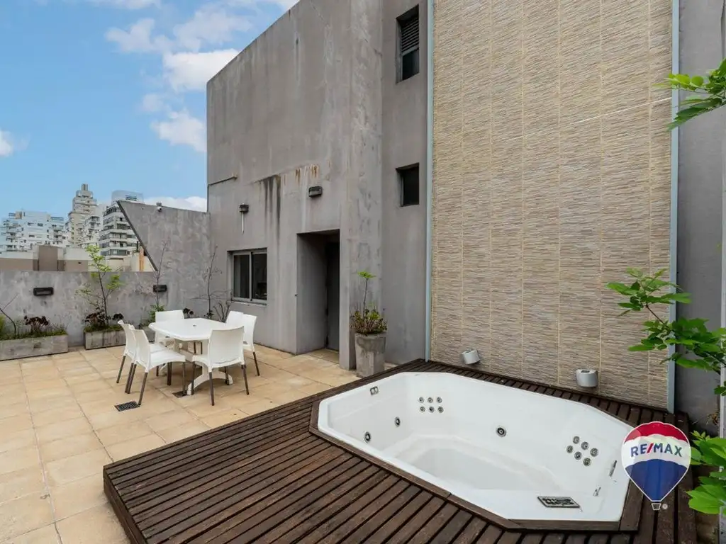 El edificio, construido en 2015, ofrece amenities en el último piso: terraza con vista panorámica, jacuzzi, gimnasio equipado, sauna, solárium y laundry. Excelente mantenimiento con expensas moderadas.