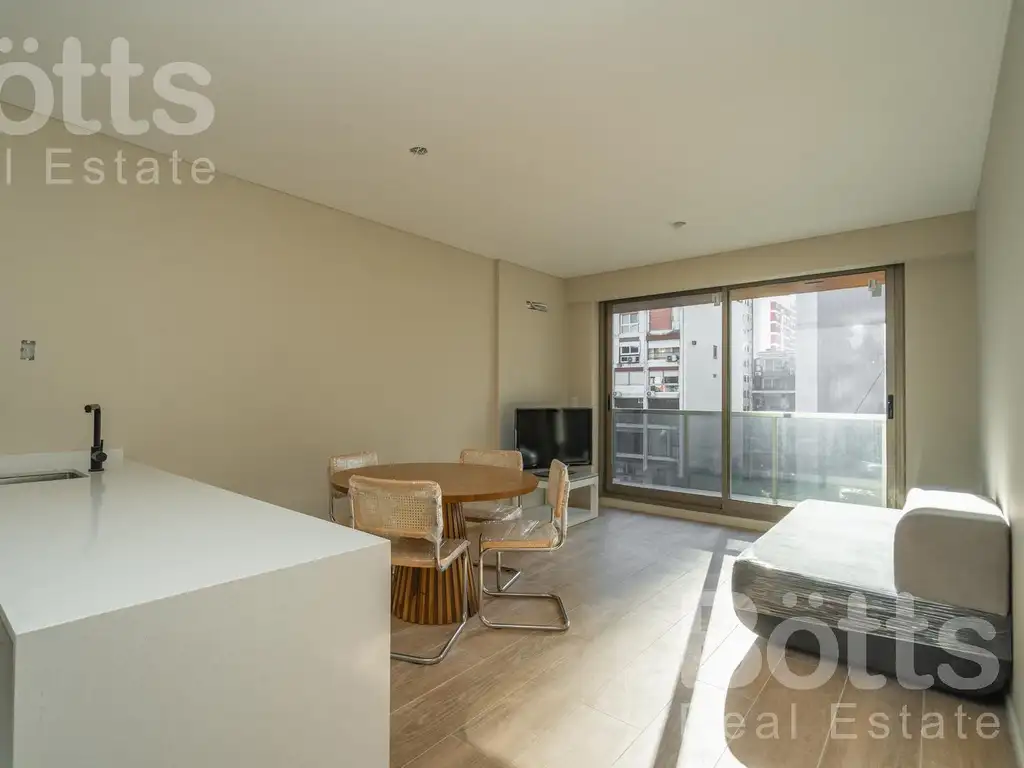El sector dormitorio cuenta con puertas espejadas con salida al balcón, el baño es completo con inodoro y bidet, la mesada es de cuarzo y también las griferías en la ducha son mono-comando para la flor de ducha y el duchador.