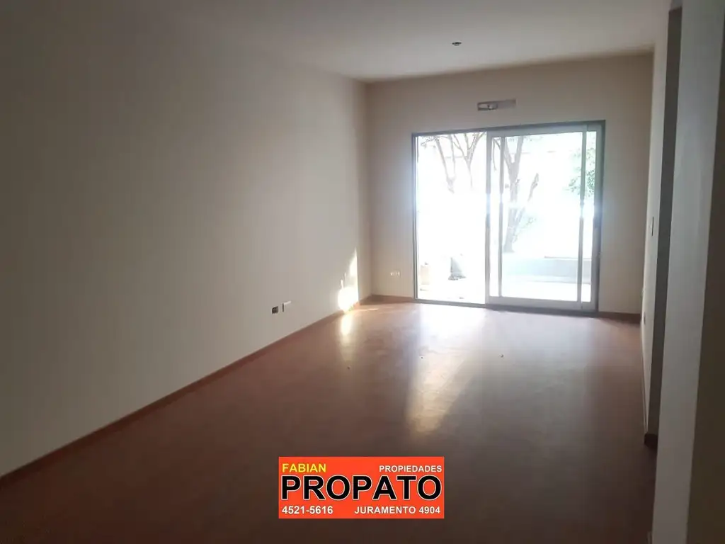 Departamento de tres ambientes, segundo piso contrafrente con balcón aterrazado.