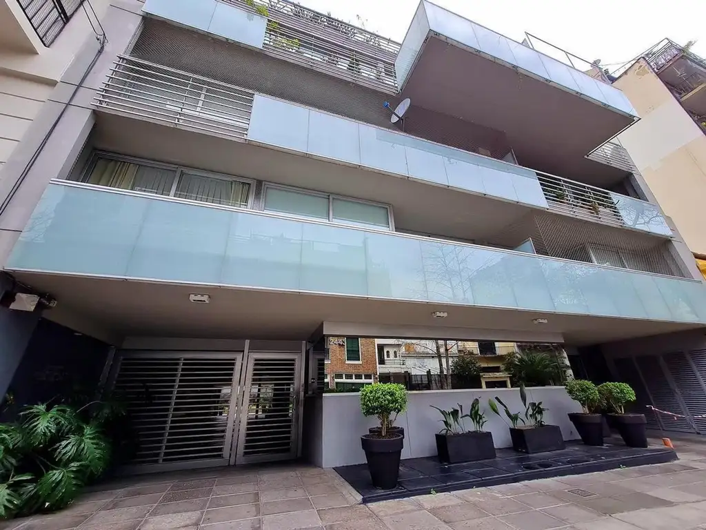 En pleno corazón de Belgrano R Exclusivo dos ambientes, al contrafrente, con baulera y cochera fija y cubierta, cochera de cortesía para invitados ubicado en el 9 piso, con un amplio balcón y excelente luminosidad. Cuenta con toilette,, balcón corrido de 9 mts cuadrados, con vista abierta al interior del gran pulmón de manzana, en el que se encuentra un sector de juegos infantiles y la pileta con solárium.