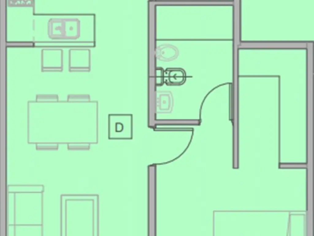Living Comedor con cocina integrada terraza con parrilla, toiltte de recepcion, dormitorio con salida a terraza y baño completo