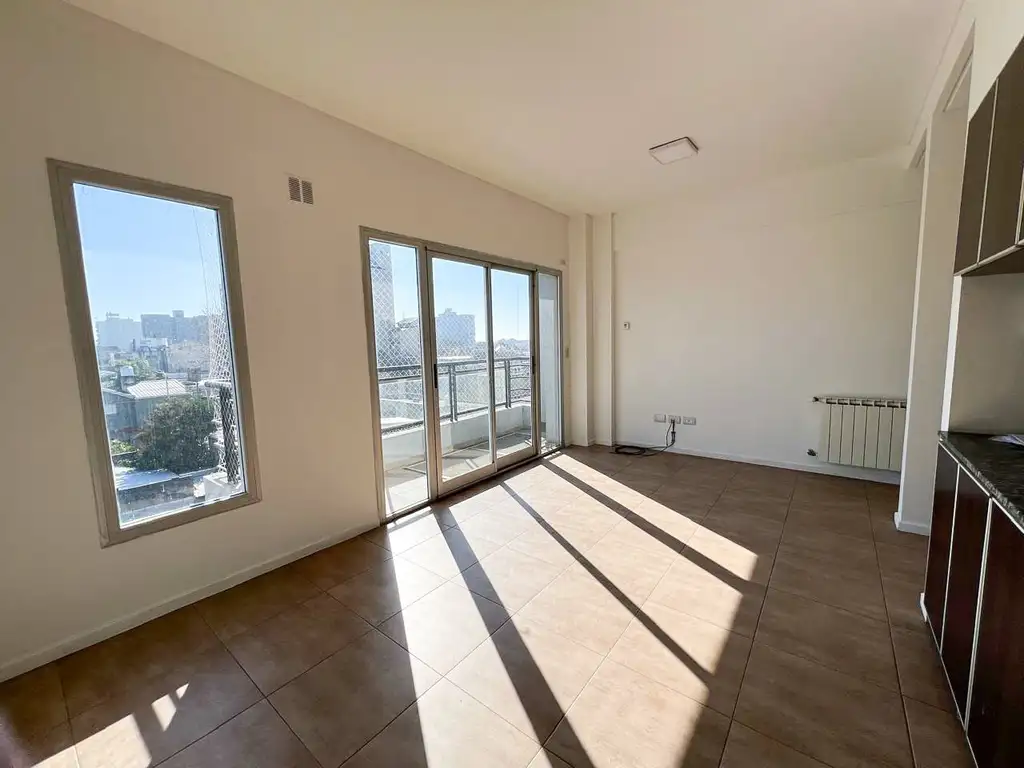 Semipiso 2 ambientes en venta. Estar comedor con balcón y cocina integrada, baño completo y 1 dormitorio con placard. No tiene cochera.