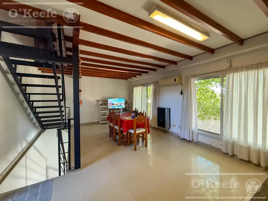 Distribuido en 3 plantas, ofrece en planta baja un recibidor, posible garage, por donde accedemos al primer piso con un amplio living comedor, cocina con Barra desayunadora, horno y anafe empotrado. Baño completo y Amplio Lavadero con Parrilla.