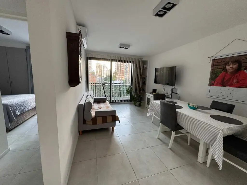 Un dormitorio con placards hechos a medida, un baño completo con artefactos y griferias de calidad.Todo en excelente estado y listo para mudarse. muy buen diseño y confort dentro de este departamento, tambien tenemos un Patio si un Patio hermosisimo de unos 25 metros cuadrados aprox. con acceso desde la cocina donde podes disfrutar del aire libre, por eso esta unidad es única dentro del mismo edifico único.