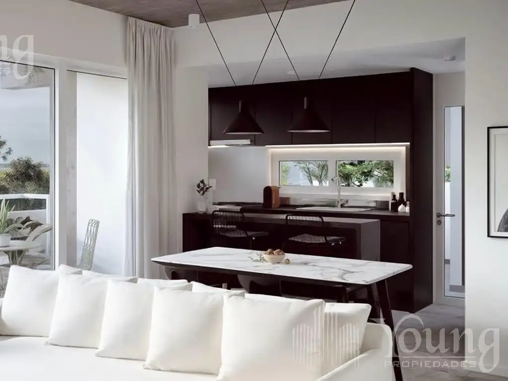 Accedemos al departamento por un palier privado., ingresamos al living comedor, un ambiente amplio y muy lumino con salida al balcón aterrazado al frente con parrilla.