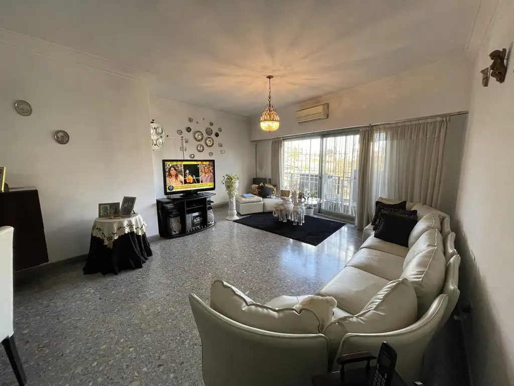 El inmueble se ubicado en un 1er piso con ingreso por escalera compartido; Acceso al mismo por un amplio living comedor con balcón al frente, 2 dormitorios con placard, baño con bañera, cocina amoblada con acceso al patio y a la terraza donde se encuentra un amplio Quincho con parrilla, baño y un patio/terraza con vista al frente