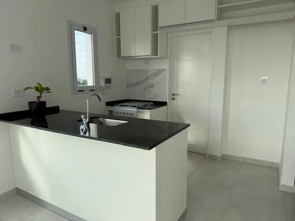 Amplio living comedor con balcón corrido, cocina integrada y barra desayunador, muebles bajo mesada, y alacenas, artefacto de cocina. Lavadero semicubierto.