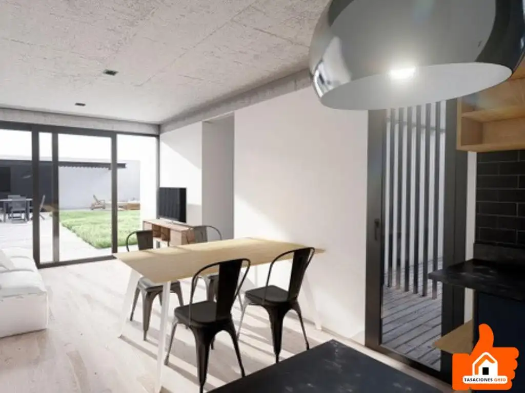 Living comedor con pisos de porcelanato símil madera