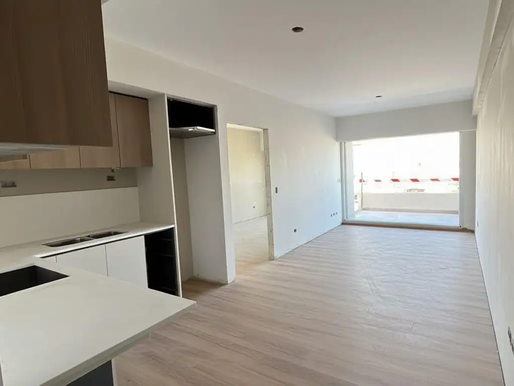 Livingcomedor con cocina integrada, equipada con anafe y horno eléctrico, muebles de cocina de primera calidad (alacenas y bajo mesada) y espacio para lavarropas incorporado.