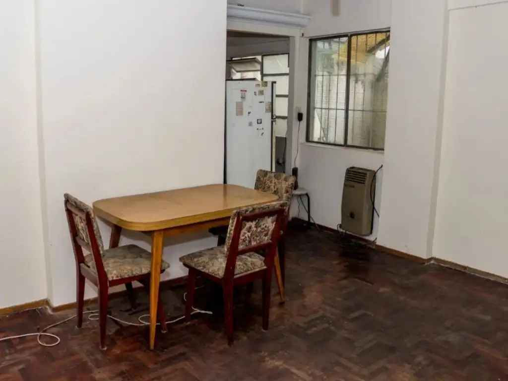 Apto crédito. Departamento de 2 ambientes, al lateral. 1º piso. Orientación oeste. Superficie total de 46m2, cubierta de 34m2 y descubierta de 12m2. Un dormitorio, un baño completo. Living-comedor, cocina integrada. Patio. Estado regular, luminoso.
