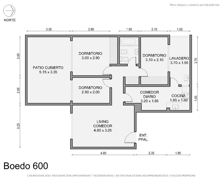 La propiedad cuenta con puerta blindada y se distribuye de la siguiente manera; living comedor al contra frente con ventana mirando al oeste, pasillo íntimo, baño completo, 3 dormitorios, cocina independiente con sector de comedor diario con artefacto eléctrico (posibilidad de conectar el gas natural nuevamente) y lavadero independiente.