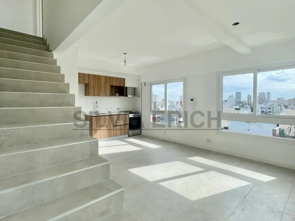 En la calle Río de Janeiro al 500, piso 13 al frente, muy luminoso y con excelente ventilación natural, se encuentra esta unidad tipo dúplex de 2 ambientes de 61 metros.