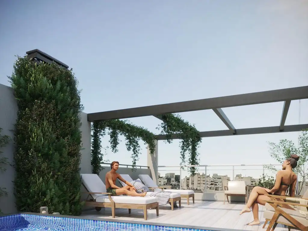 2 ambientes distribuidos en dúplex de 56 m2 cubiertos (28 m2 en planta baja + 28 m2 en planta alta)