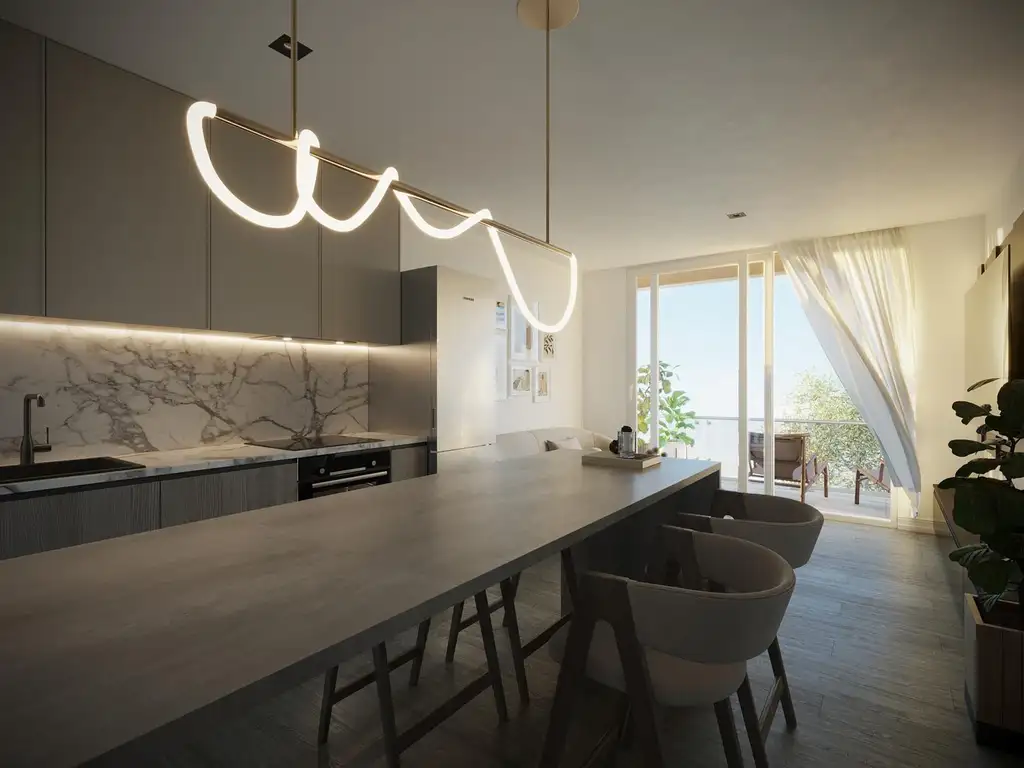Para las unidades de dos ambientes se instalara? anafe ele?ctrico de 4 hornallas y horno. Las cocinas estara?n preparadas para instalar un purifi-cador (sin extraccio?n al exterior). Purificador no incluido.