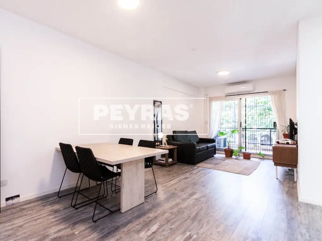 El departamento se compone de living-comedor con salida al balcón, cocina independiente, dos dormitorios, un baño completo y toilette. El patio aporta un segundo espacio al aire libre, ideal para uso diario, ventilación y luz natural en el sector posterior.
