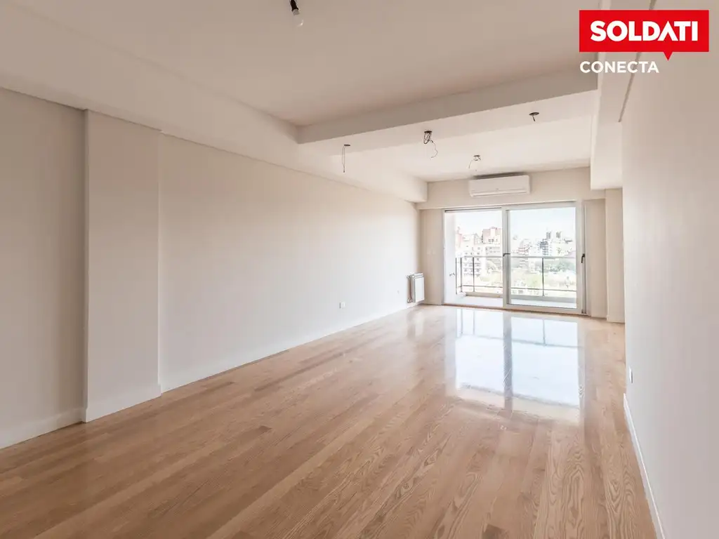 Este departamento de 4 ambientes, cuenta con una superficie de 142 m2, está ubicado en las unidades del 8vo, 9no y 10mo piso. Se ingresa por un amplio un hall de recepción con placard toilette para visitas. El living comedor, ubicado al frente, es muy luminoso y cuenta con vistas abiertas. La cocina es espaciosa y está equipada con un comedor diario y un lavadero independiente, donde se encuentra la caldera dual que proporciona calefacción y agua caliente.