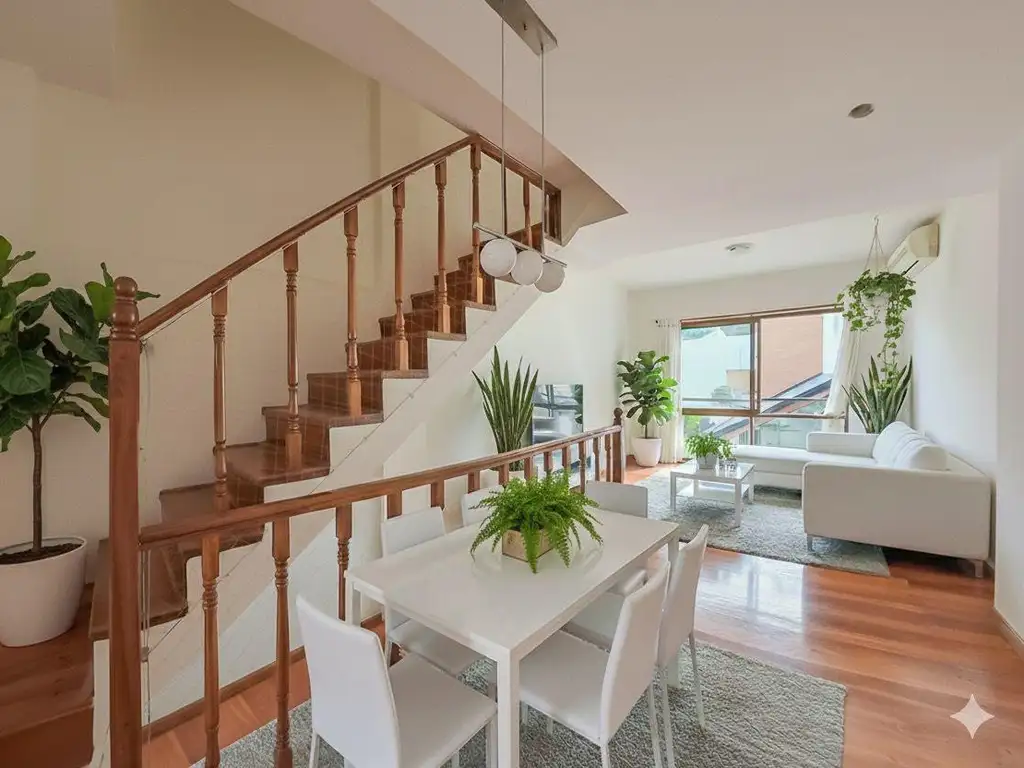 Ingreso a la unidad por escalera con piso de madera tarugada, brindando mayor calidez desde el acceso.