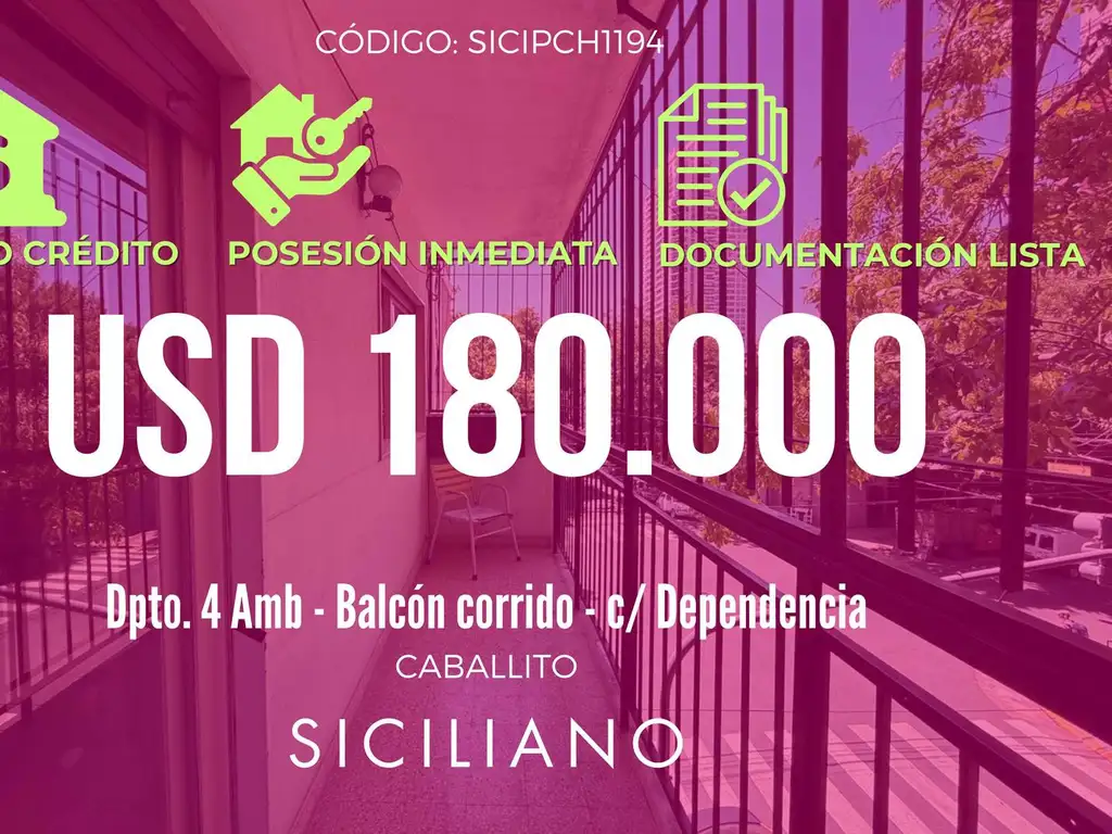 -Departamento 4 ambientes con dependencia y balcón al frente.