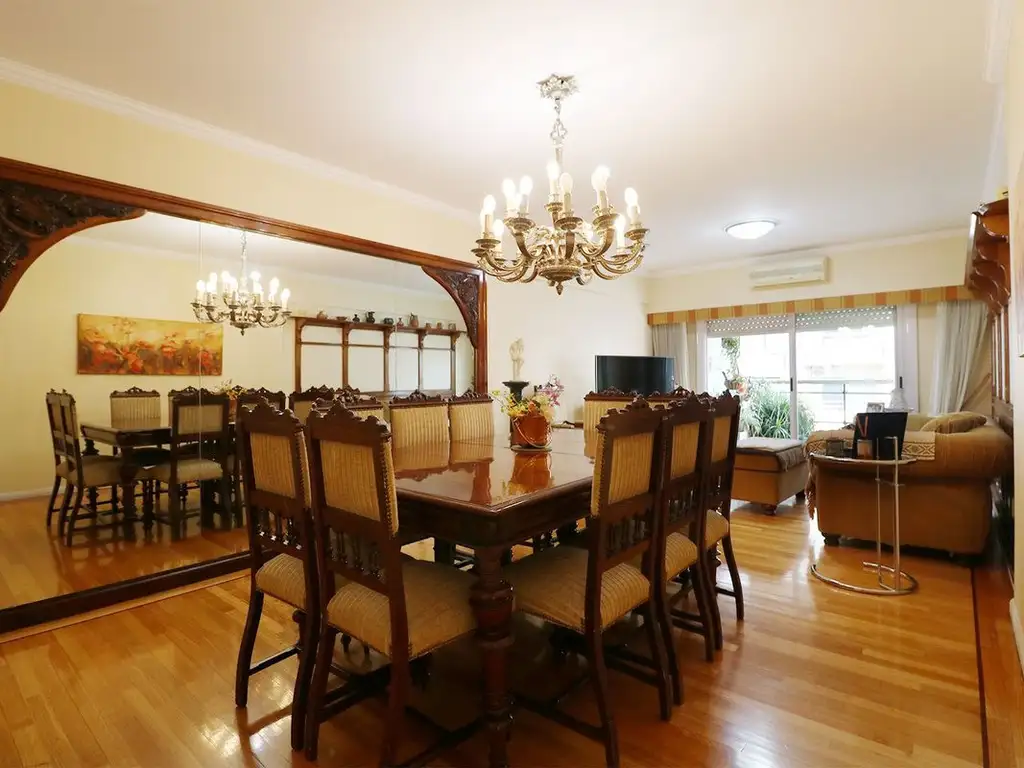 • Living-comedor apaisado de gran tamaño, con salida directa al balcón corrido al frente, orientación oeste lo que garantiza excelente luz natural durante todo el día, especialmente a la tarde. Piso de parquet en perfecto estado, grandes ventanales.