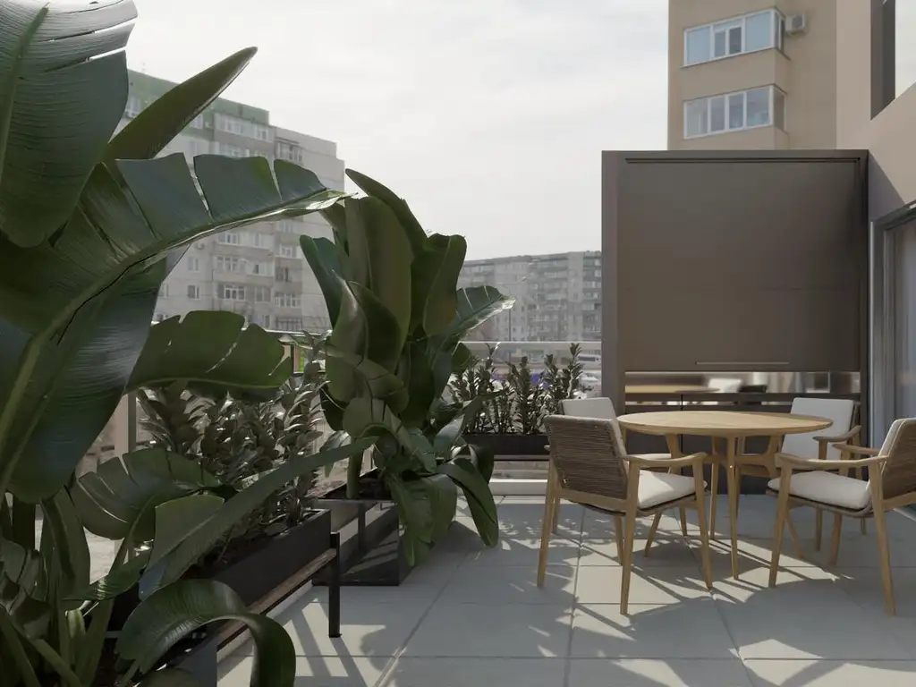 En el 1 piso se ubica el SUM con 2 baños, espacio para cocinar, y un patio, y el resto de los amenities están en el piso 13 con una terraza al frente con Parrillas, y otra amplia terraza al contrafrente con un Solarium y Deck con Piscina y duchas exteriores. En el Subsuelo y la Planta Baja están previstos los espacios para Bike Parking y cocheras.