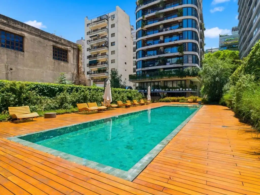 El inmueble ofrece terminaciones de primera calidad y distribución inteligente de espacios. Destacan sus amenities de primer nivel: gimnasio equipado, pileta climatizada, solarium, salón de usos múltiples, servicio de seguridad 24hs, portón automático, ascensor y área de lavandería.