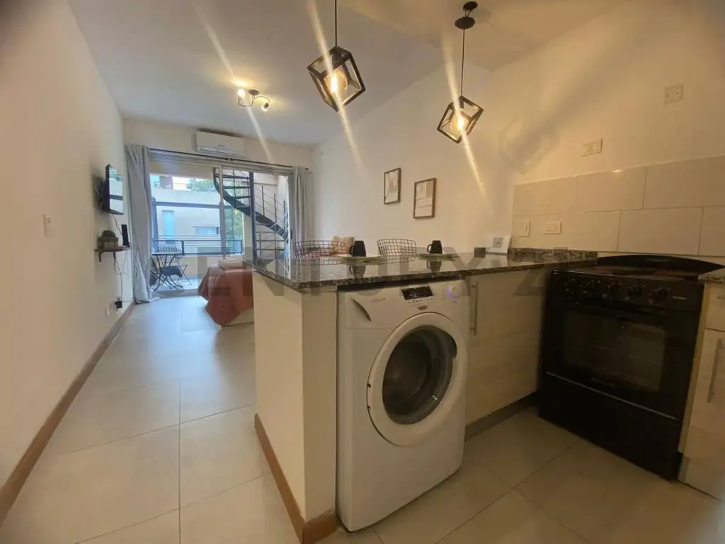 Muy luminoso y con espacios bien distribuidos. Totalmente equipado con heladera, horno, lavaropas y televisión, listo para habitarlo. Incluye cochera.