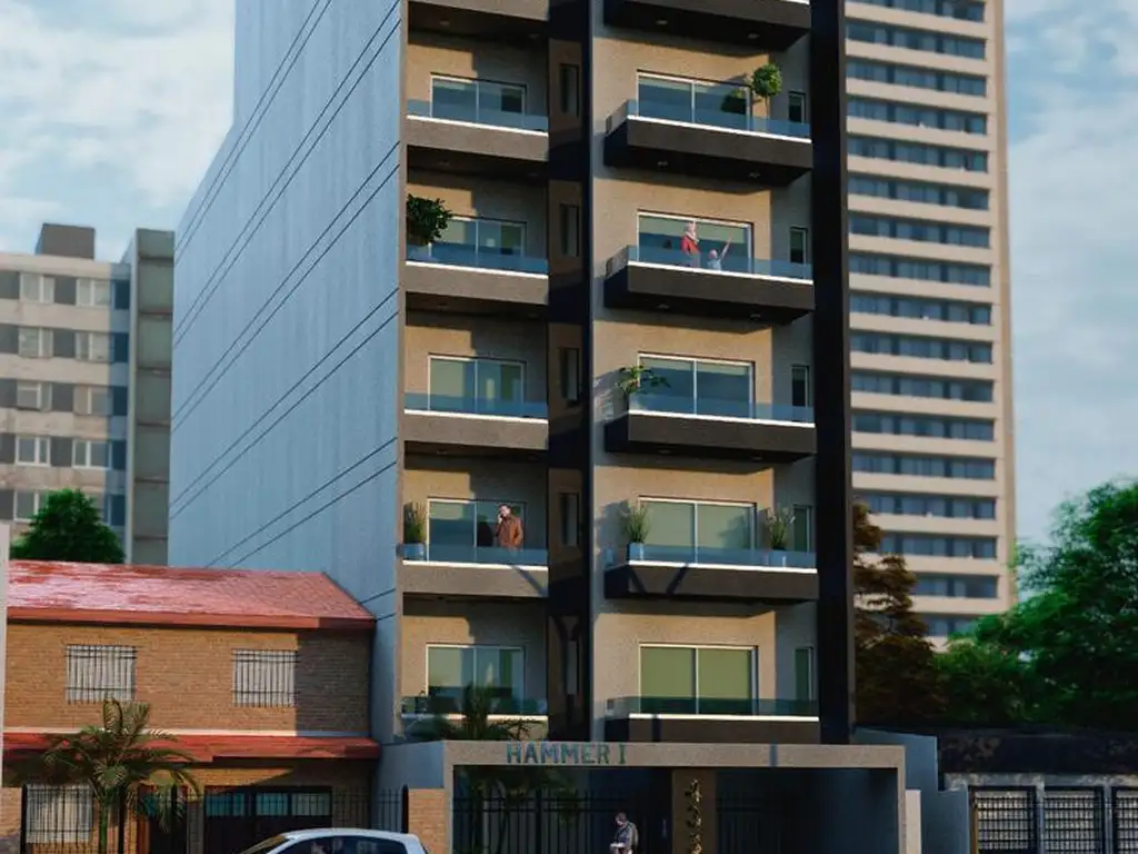 El edificio cuenta con 7 pisos, 6 cocheras en planta baja, 6 pisos con unidades monoambientes y dos ambientes