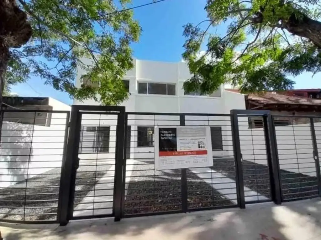 Entrada de auto con jardín, 2 de los duplex con portón corredizo y 1 de abrir.