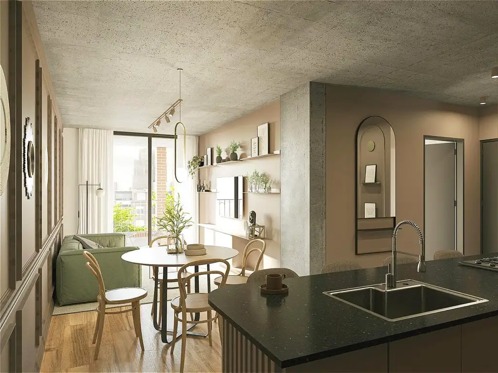 Al ingresar nos recibe el ambiente living-comedor con la cocina sectorizada, semi integrada al resto del ambiente a través de una barra desayunadora. Lavadero independiente, salida a un balcón corrido y aterrazado al frente con parrilla.