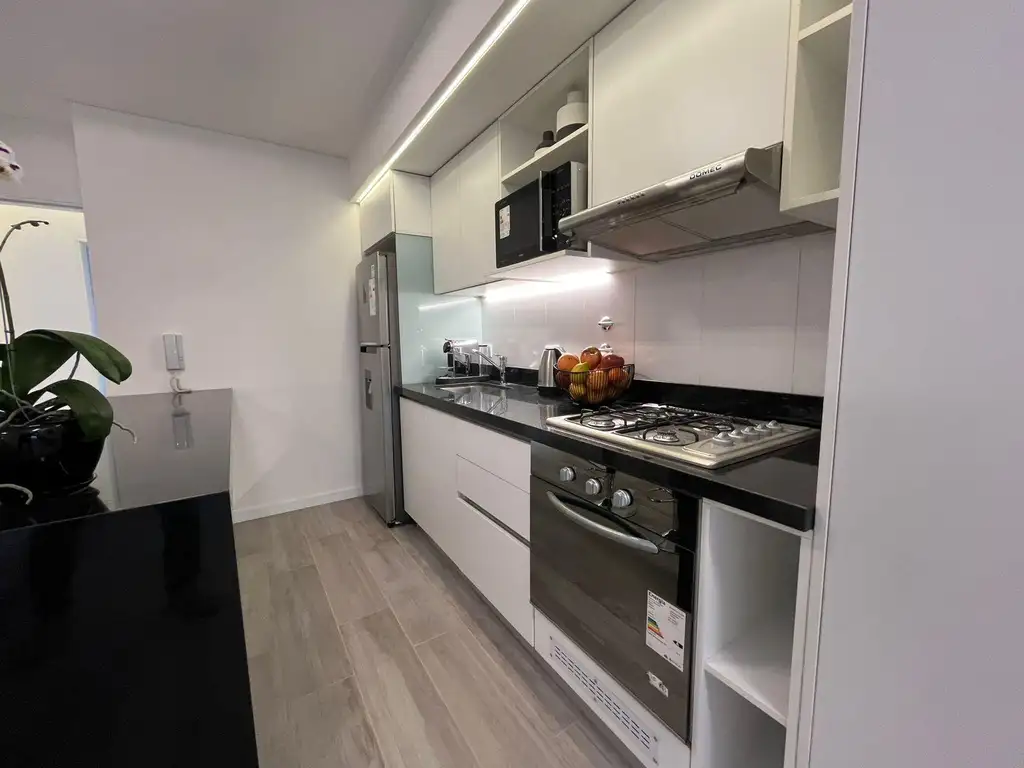 Los departamentos de 1 ambiente tienen cocina semi integrada totalmente equipada, amplio ambiente con placard, baño y balcón.