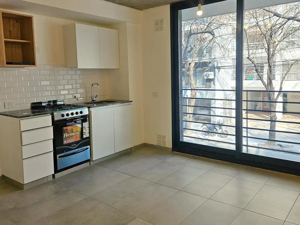 Ambiente único con amoblamiento de cocina. Baño completo con receptáculo de ducha.