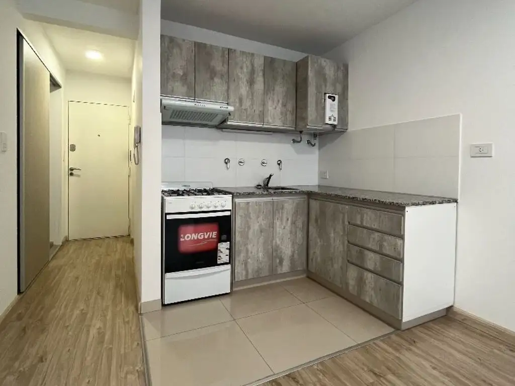 Monoambiente con Detalles de Calidad: Esta unidad ofrece un ambiente amplio y luminoso con piso de ingeniería en madera, aberturas de aluminio anodizado y ventilación cruzada para asegurar una temperatura y luminosidad agradables durante todo el año. El departamento cuenta con puerta blindada, preinstalación para aire acondicionado, termotanque a gas instalado y picos de gas, que complementan la comodidad de este espacio.