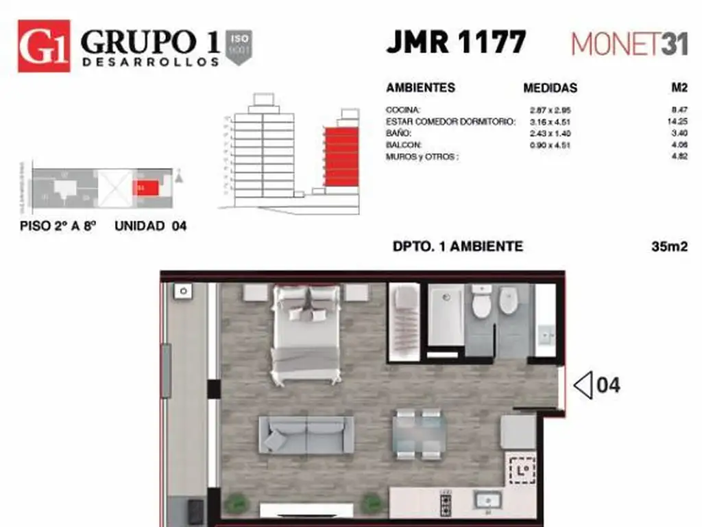 Venta - Departamento monoambiente - J. M. de Rosas al 1100 - Centro Rosario