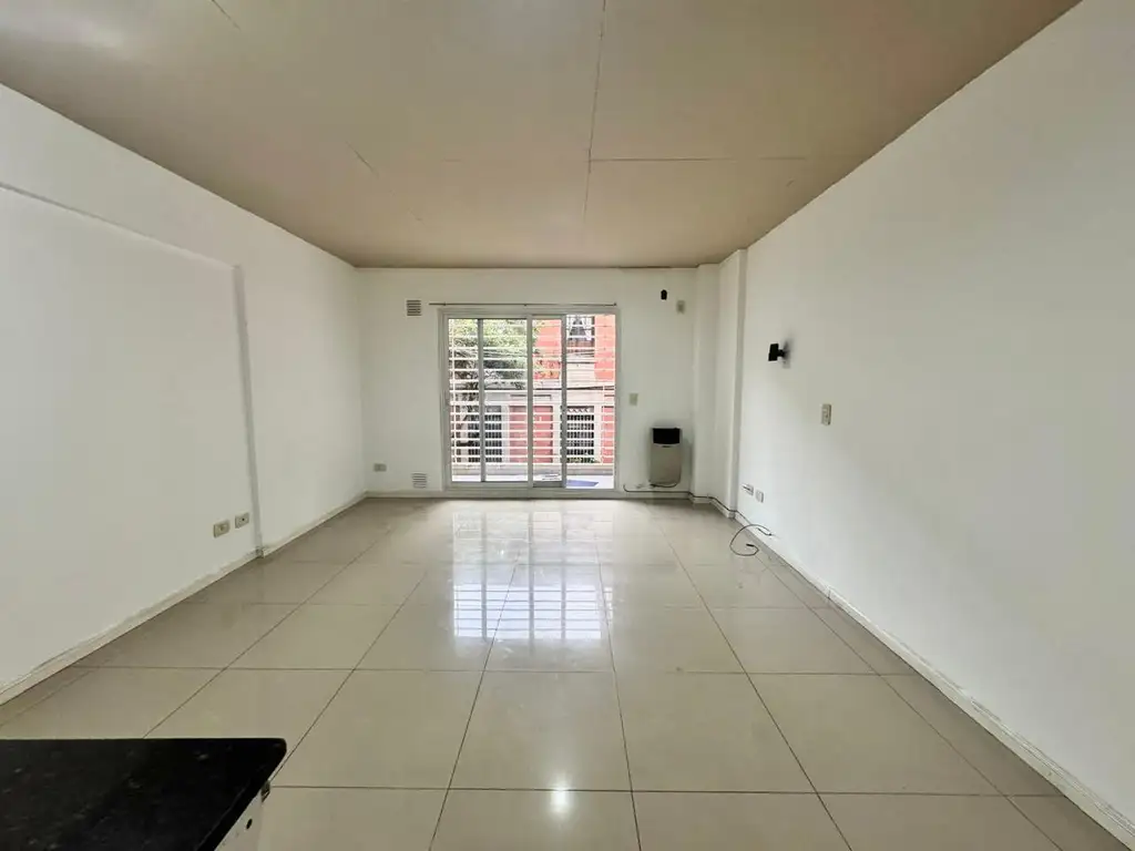 Descripción: Monoambiente ubicado en un piso 2 con balcón al frente. La unidad cuenta con un ambiente amplio, de pisos de porcelanato y muy buena iluminación. Cocina integrada a gas, equipada con alacenas y bajo mesada. Cuenta con un práctico espacio de guardado: placard con puertas corredizas, estantes y cajonera incorporada. El baño es completo, con bañera.