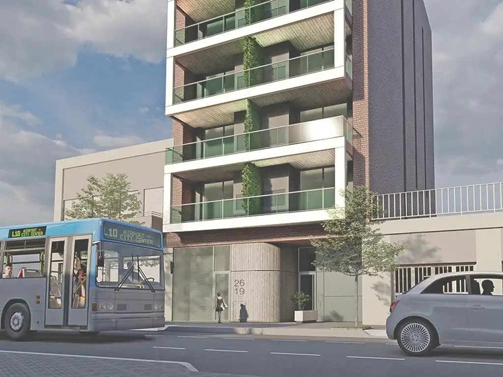Es un proyecto de planta baja y seis pisos. Las plantas son semipisos de departamentos amplios de un dormitorio y dos dormitorios con parrilleros. En la planta baja se encuentran las cocheras y local comercial.