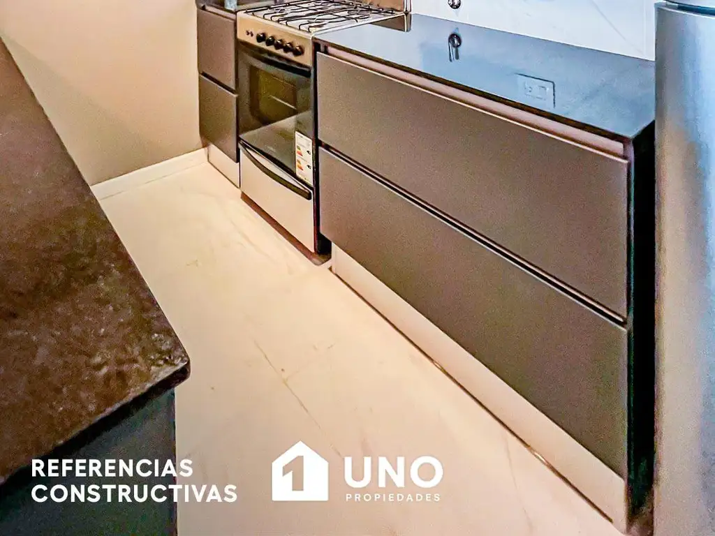 Departamento con Ventilación Cruzada y doble patio, entrega en Agosto de 2027. Galería de recepción en el ingreso y a continuación el estar/comedor con la cocina totalmente equipada, un dormitorio con placard y un segundo patio al contrafrente con conexión para lavarropas. Baño completo.