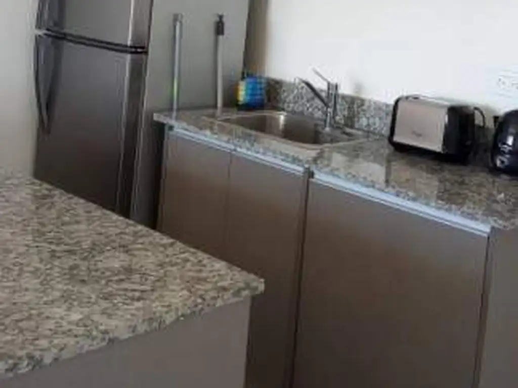 Departamento de 2 ambientes a estrenar en sexto piso con vista a Av. Bunge. Cocina integrada con barra, living-comedor con sillón cama y aire acondicionado. Baño con bañera. Dormitorio con cama matrimonial (1.40m) y vista lateral. Balcón con parrilla eléctrica y vista a Av. Bunge. Cochera con acceso por calle del Tuyú.