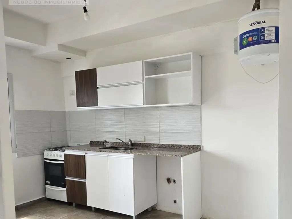 LIVING COMEDOR DE COMODAS DIMENSIONES, COCINA INTEGRADA CON MUEBLES BAJO MESADA Y ALACENA COMPLETOS CON SALIDA AL BALCON.