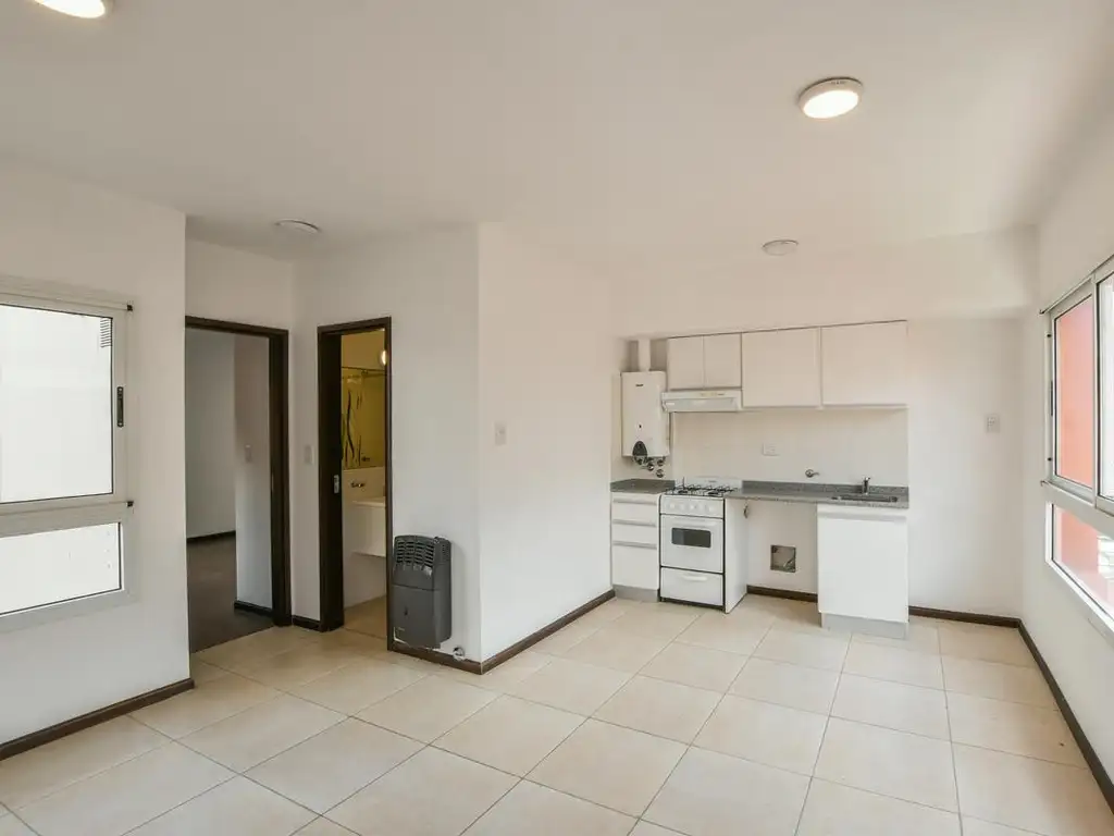 Departamento compuesto por ingreso a living comedor con cocina integrada con muebles de alto, bajo mesada, sector para lavarropas, baño completo con ducha, dormitorio con placar.