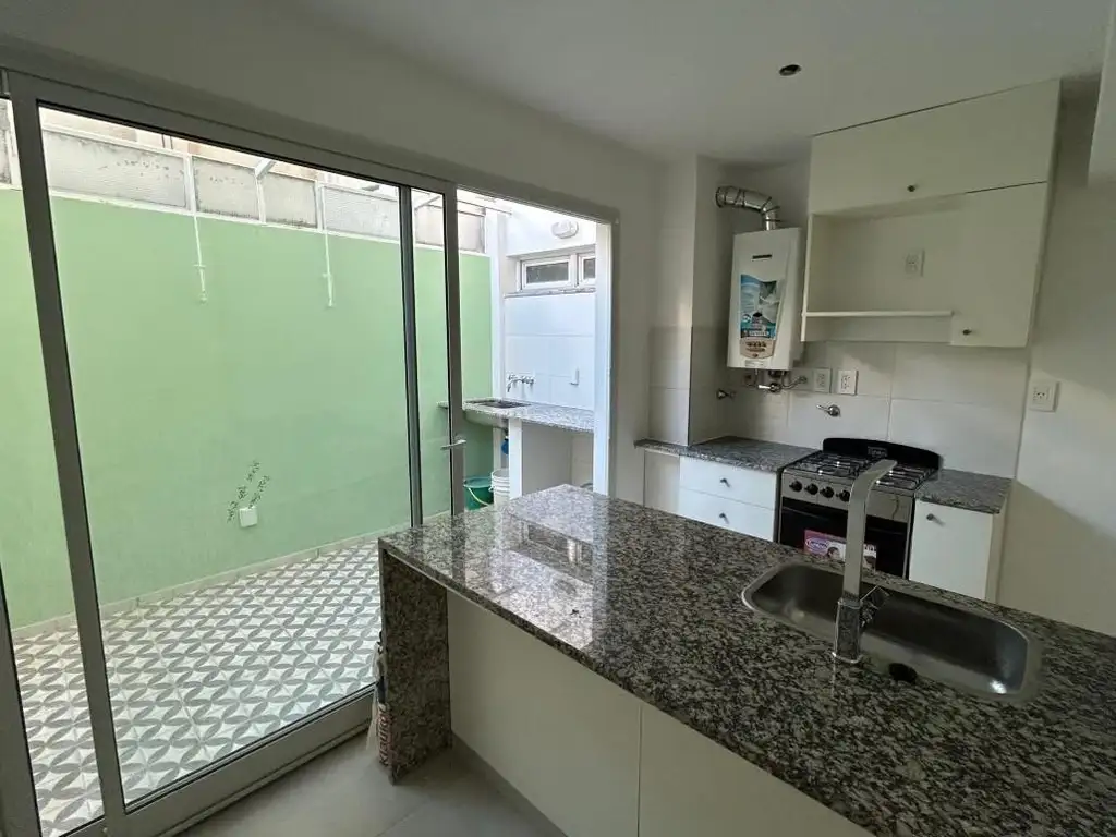 UNIDAD: Ingreso a amplio living comedor con cocina integrada equipada con isla con lugar de guardado, bajo mesadas y alacena que conecta con el primer patio interno, el cual cuenta con sector de lavadero.