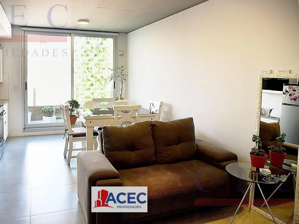 Ingreso al estar comedor con cocina integrada. Salida al balcón al contrafrente, que otorga excelente luminosidad y ventilación al ambiente.